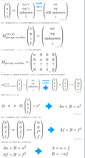 - /w:对于zview越大,xy越小(近大远小),近平面点不变*n/n,对于z,物体非线性的靠近f(非线性深度)