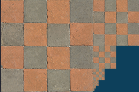 - 创建:从一张原纹理第0层新生成log2^n层纹理(n为原纹理max(width,height)的分辨率),每次生成的分辨率是上一次的1/4(width,height同时/2,如果width != height,短的到1为止不在变化,长的继续),像素大小为上一层的4倍,上一层每4个旧像素合成一个新像素,取像素平均值作为新像素的颜色值